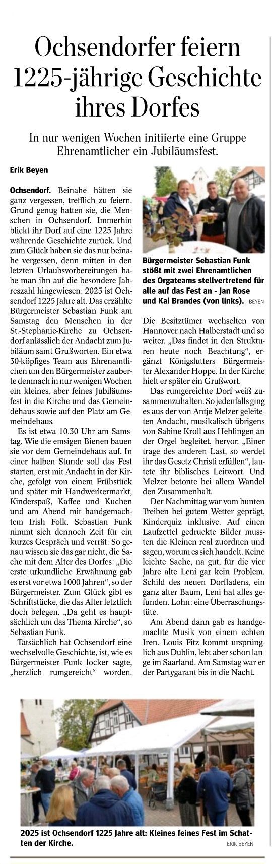Zeitungsartikel der Helmstedter Nachrichten vom 29.09.2025