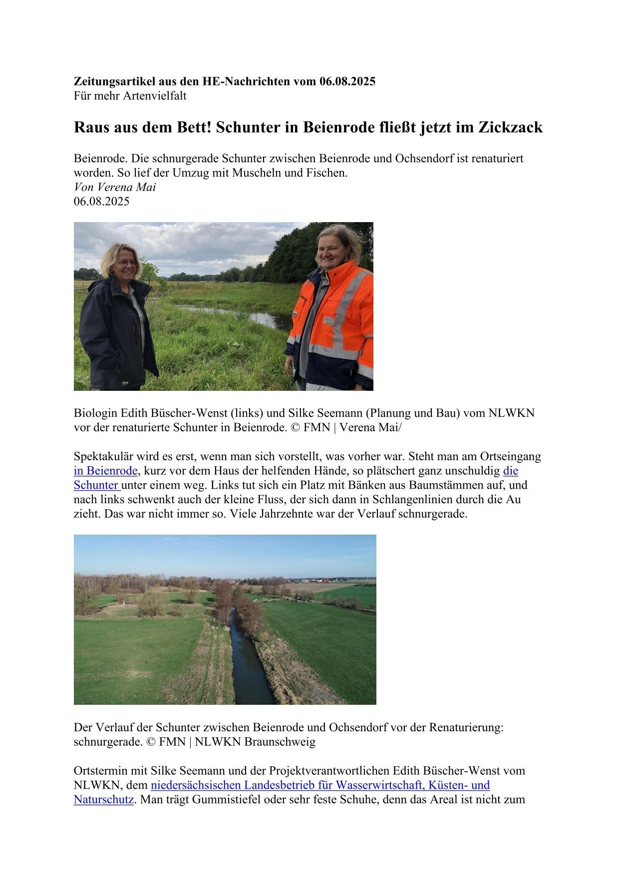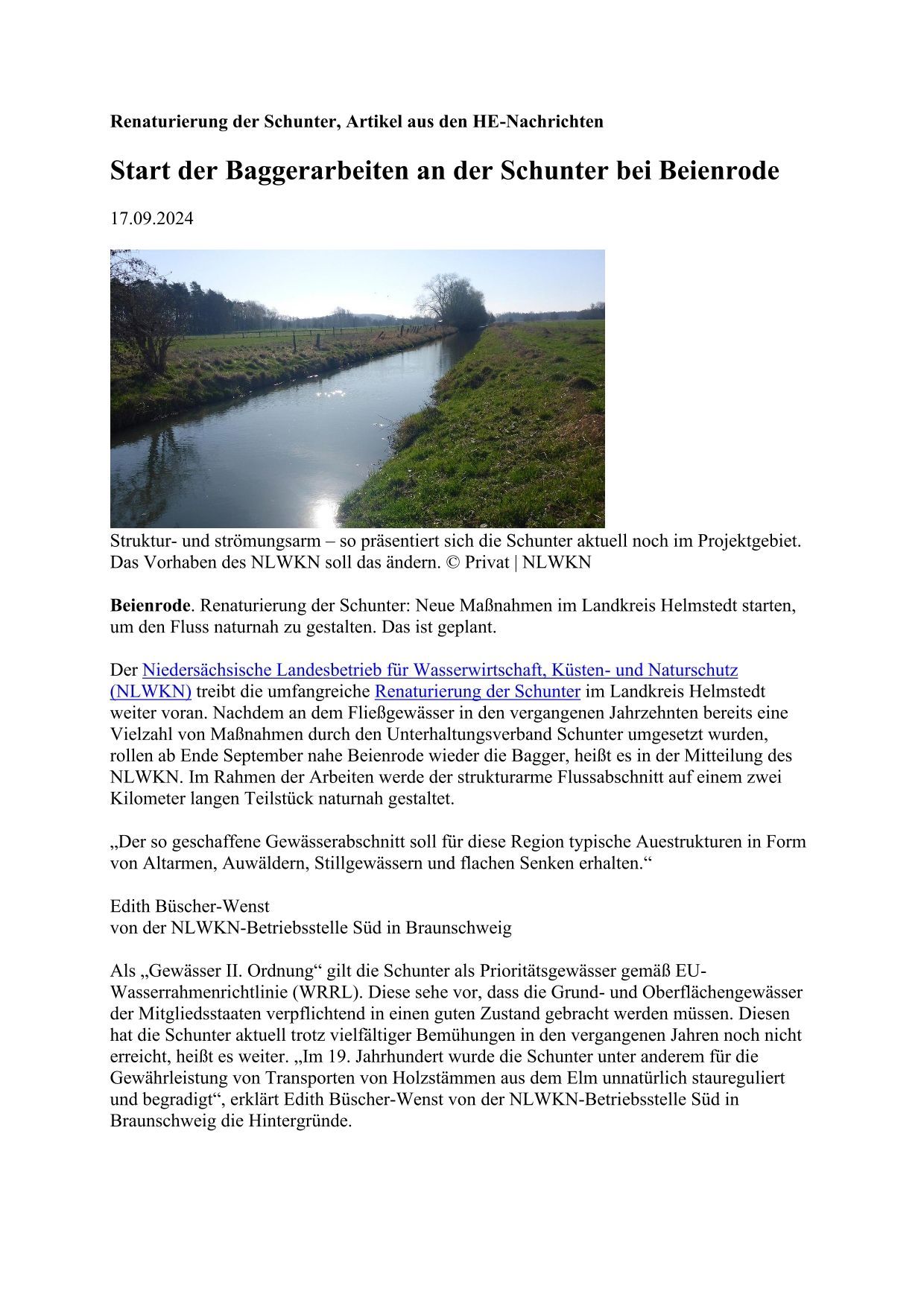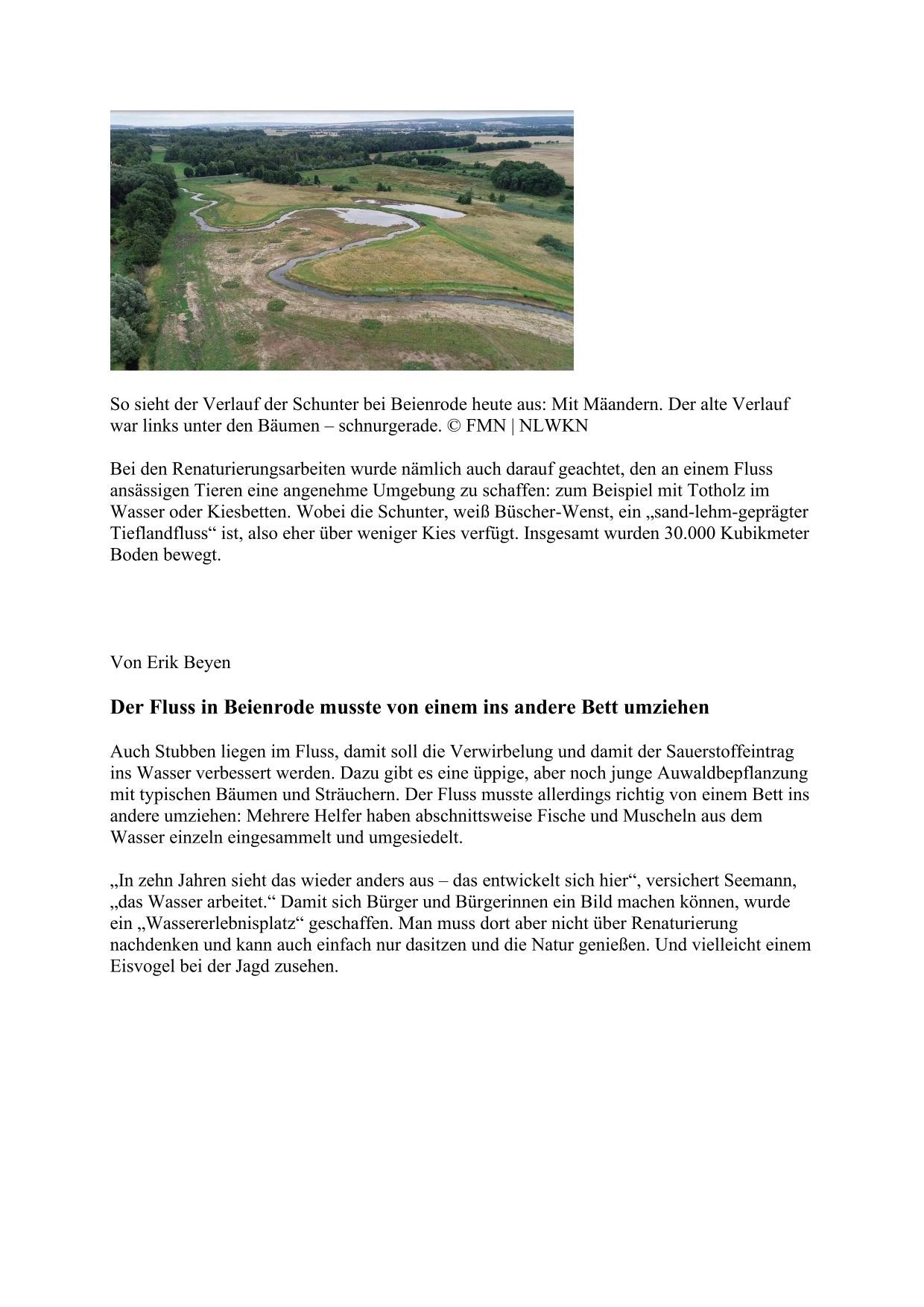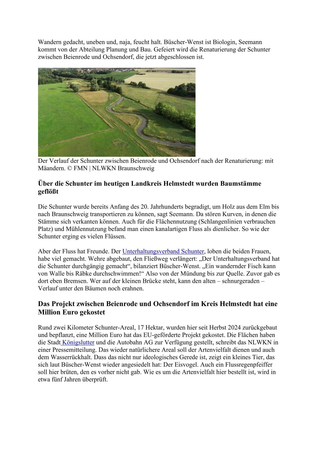 weiterer Bericht über die Renaturierung der Schunter, Gemarkung Ochsendorf - Beienrode